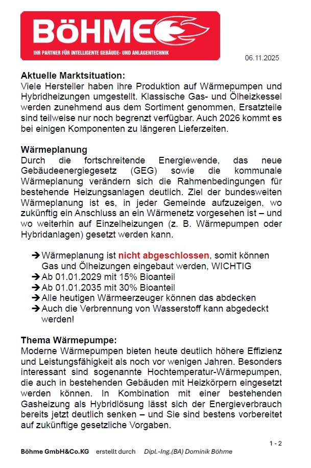 Wichtig , die Information der Wärmeplanung der Kommunen! Bitte erfragen!